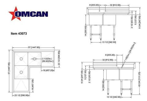 Omcan | Stainless Steel Three Compartment Sink - Corner Sink