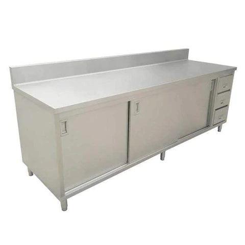 Omcan | Stainless Steel Work Table with Cabinet, Drawers, & Backsplash - 24" Deep