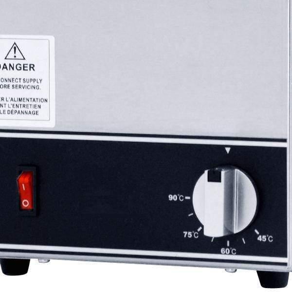 • Front-mounted adjustable temperature knob with a 45°–90°C range.