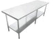 This commercial work table pairs a durable 18-gauge 430 stainless steel top with galvanized legs and undershelf for a long-lasting, easy-to-clean prep surface. Available in multiple widths and reinforced for heavier loads, it’s built for busy kitchens, workshops, and workspaces that need a dependable, sanitary surface.